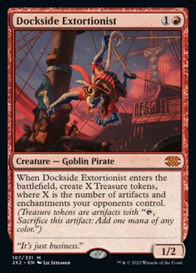 Dockside Extortionist has become a staple in Red Commander decks as a strong ramp piece. Used in the right combos, this goblin can generate infinite treasure tokens.